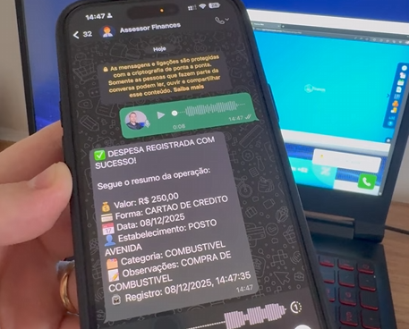 Agora você pode organizar todo seu financeiro com áudios, fotos e comprovantes pelo WhatsApp com o Assessor Finances. Simples, rápido e automático! ✅